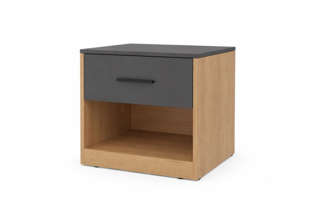 Comodino in MDF con Rivestimento Nero e Rovere