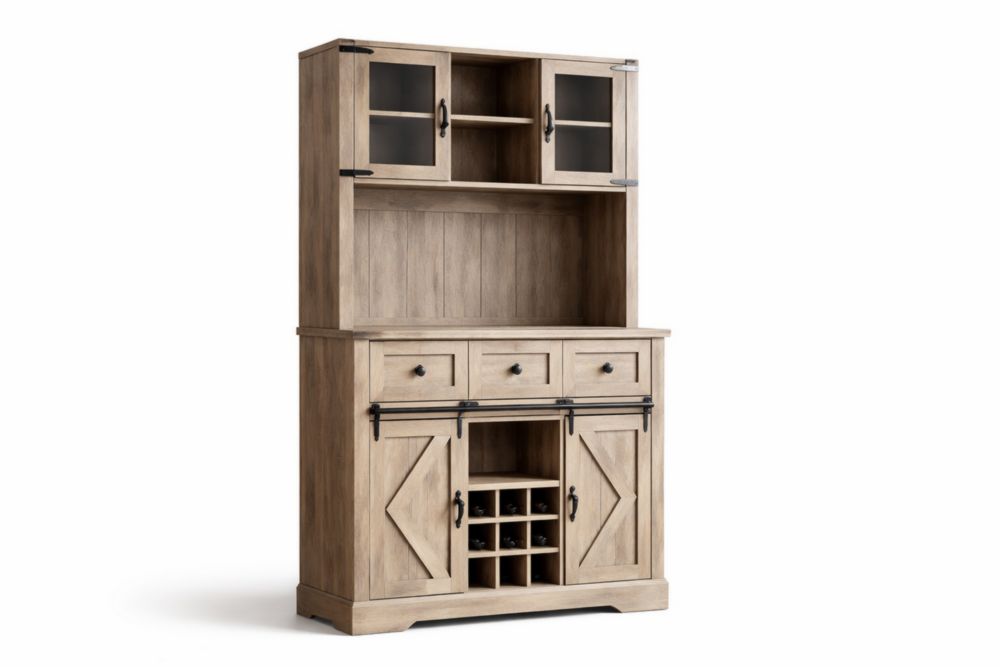 Credenza Cucina Legno massello Massello Quercia con Vetro 100x40x200 cm