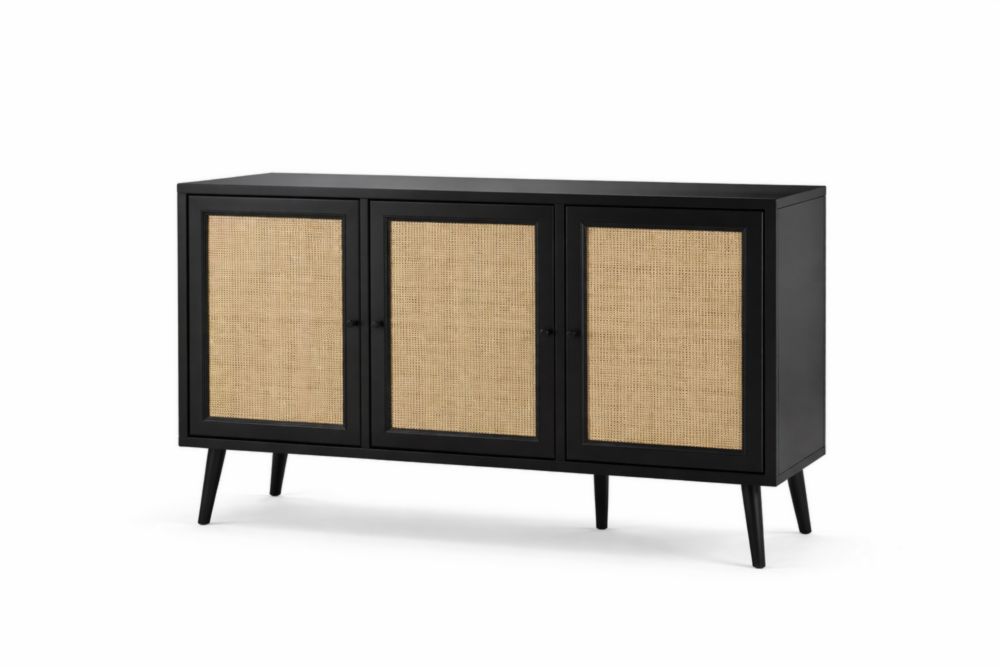 Credenza in Legno massello Nero e Rattan con Ante 110x80x35 cm