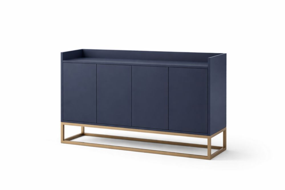Credenza in MDF Blu con Base in Legno massello Dorato