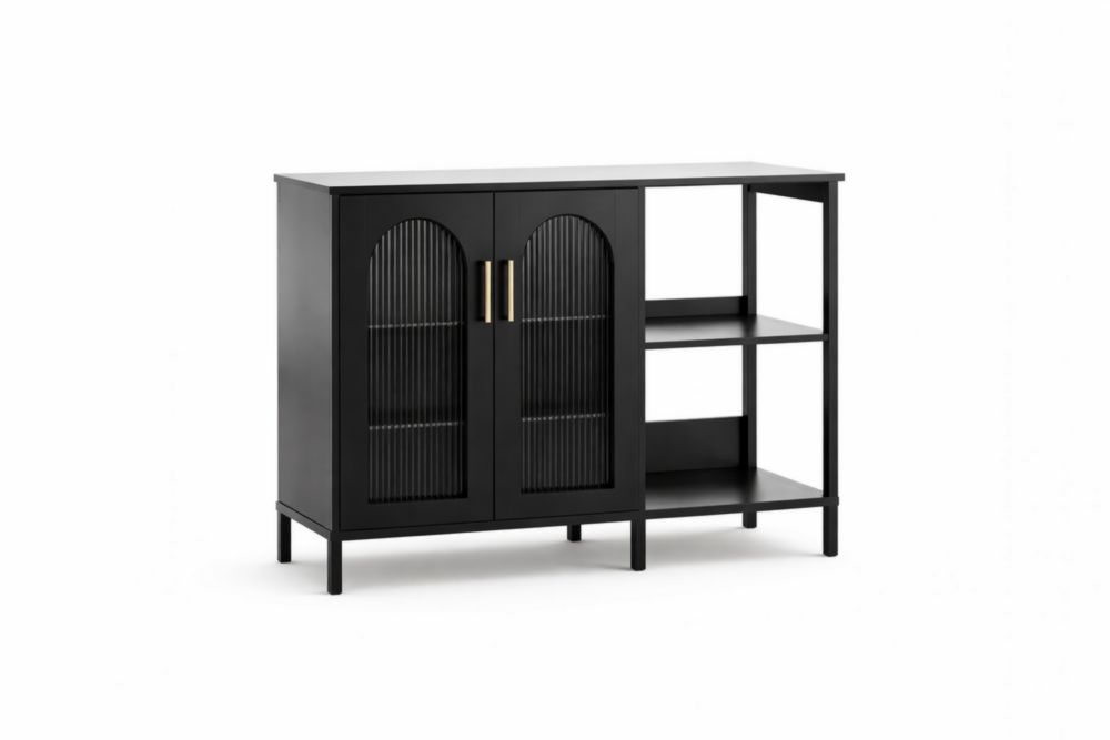 Credenza in MDF Nero con Ante Scanalate e Ripiani Aperto L100xP40xH90 cm