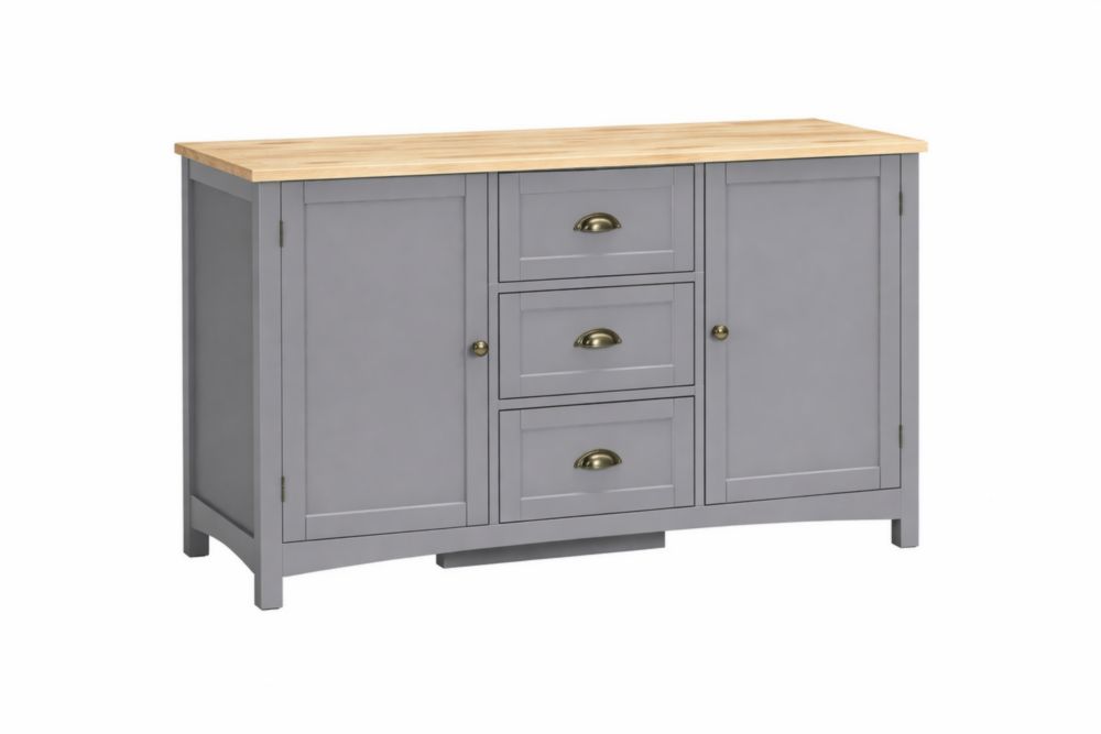 Credenza in Legno MDF Grigio con Ripiano in Legno Massello 3 Cassetti 2 Ante