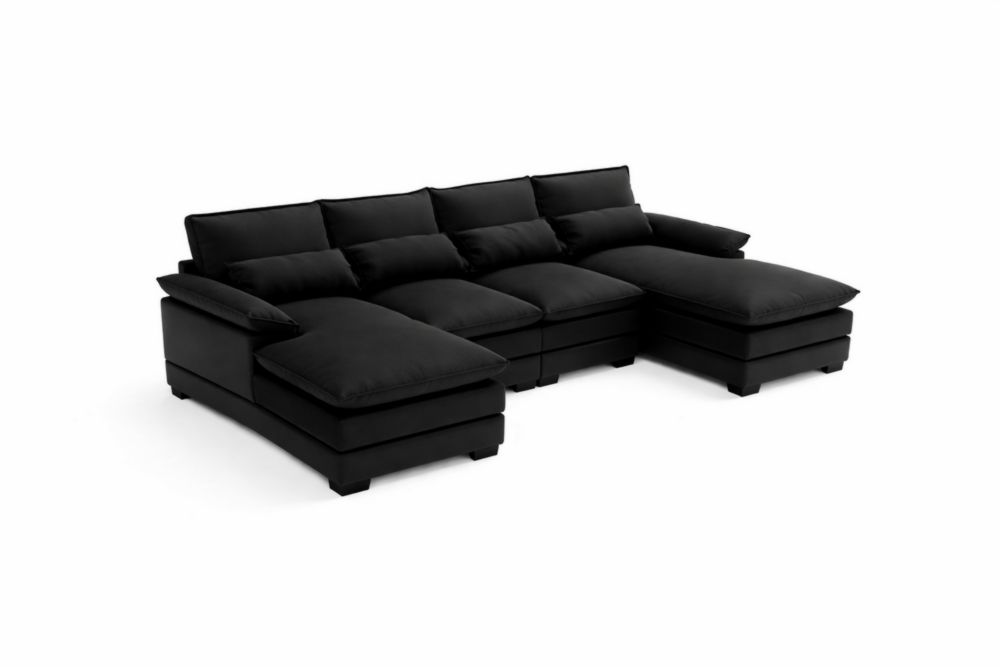 Divano angolare modulare in tessuto nero con chaise longue