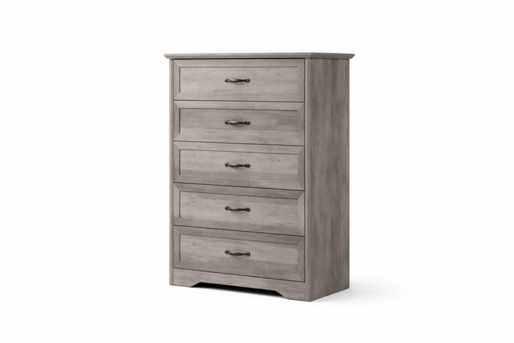 Cassettiera in Legno massello MDF grigio con 5 cassetti