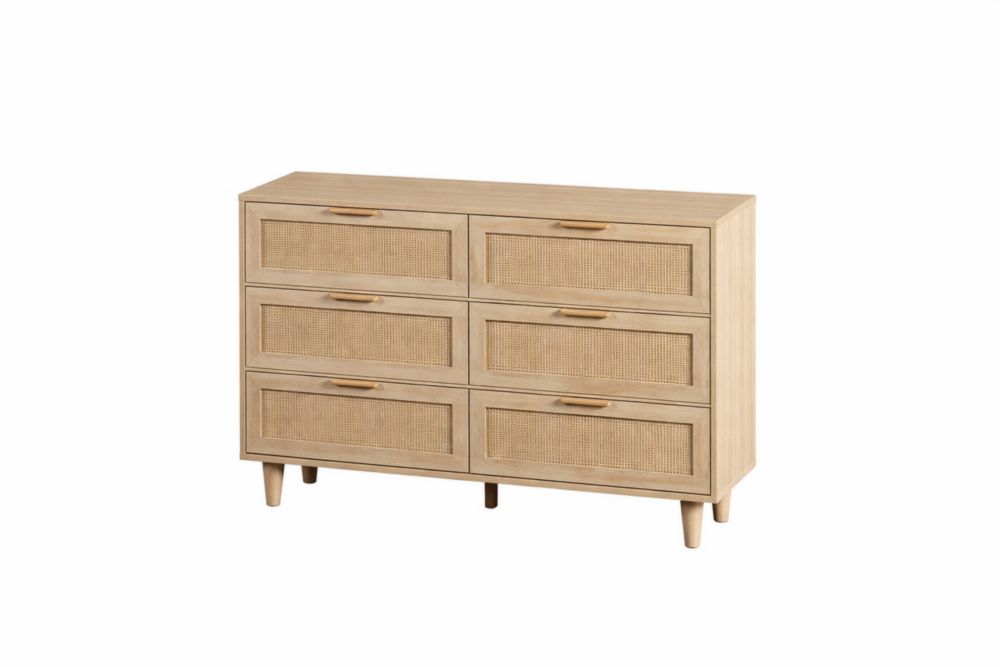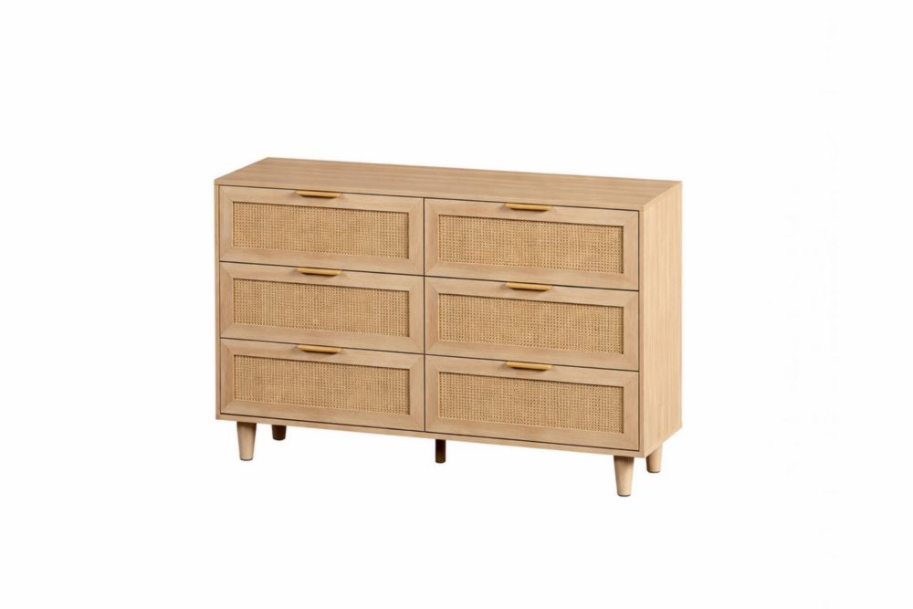 Cassettiera in Legno MDF e Rattan 6 Cassetti Beige 120x40x80 cm