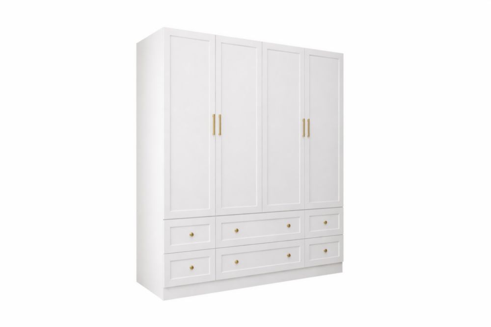 Armadio in legno MDF bianco con maniglie in Acciaio inossidabile a 4 ante e 4 cassetti