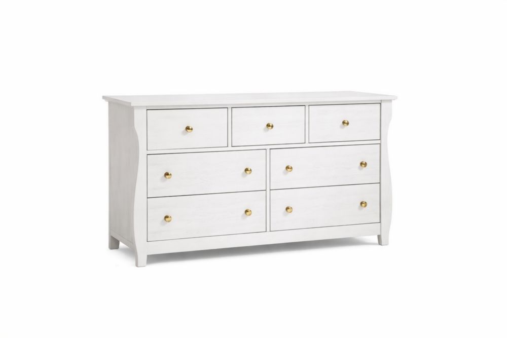 Cassettiera Legno massello massello bianco sette cassetti maniglie ottone
