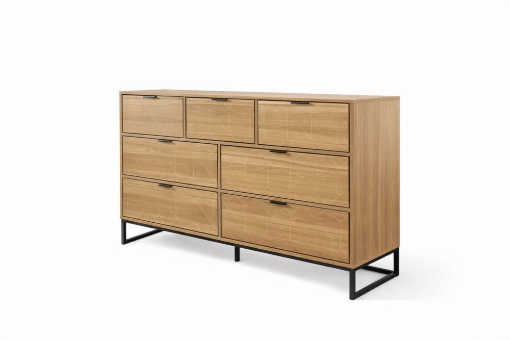 Cassettiera in Legno di Rovere con Struttura in Acciaio inossidabile, 7 Cassetti, 140x45x85 cm