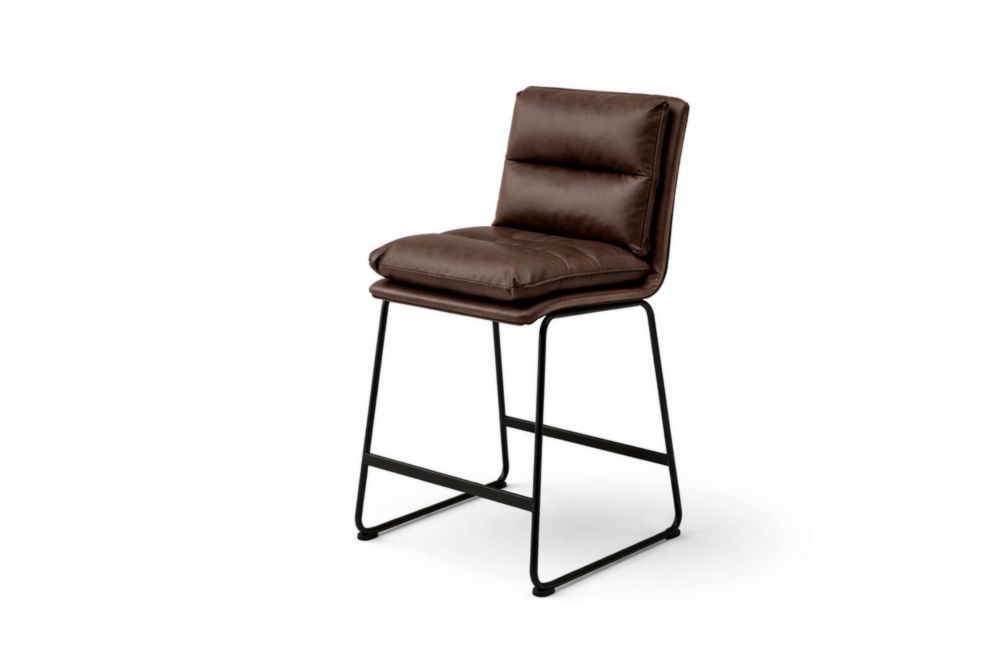 Sgabello in pelle sintetica marrone struttura in Acciaio inossidabile nero altezza