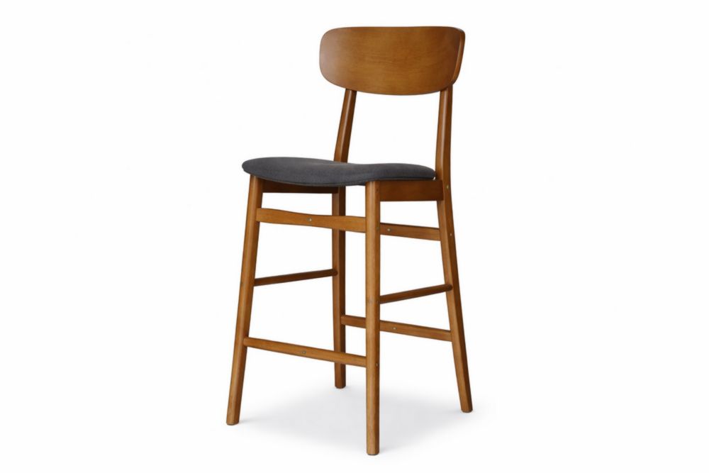 Sgabello in Legno Massello con Seduta in Tessuto Grigio