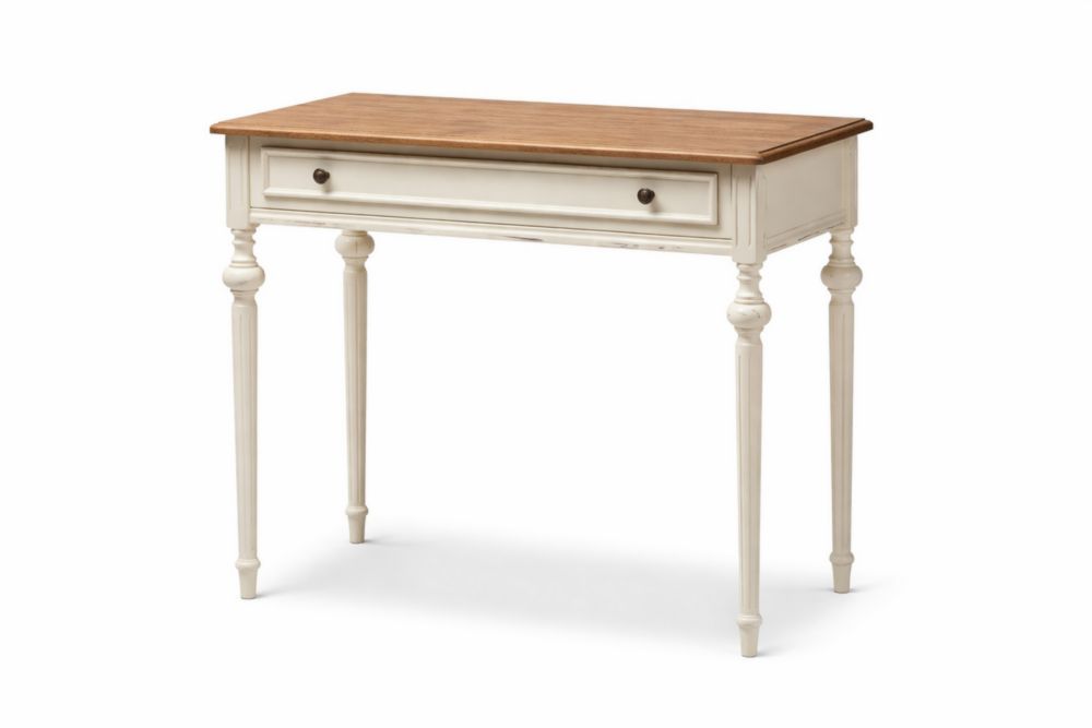 Scrivania in Legno Massello Bianco e Naturale con Cassetto